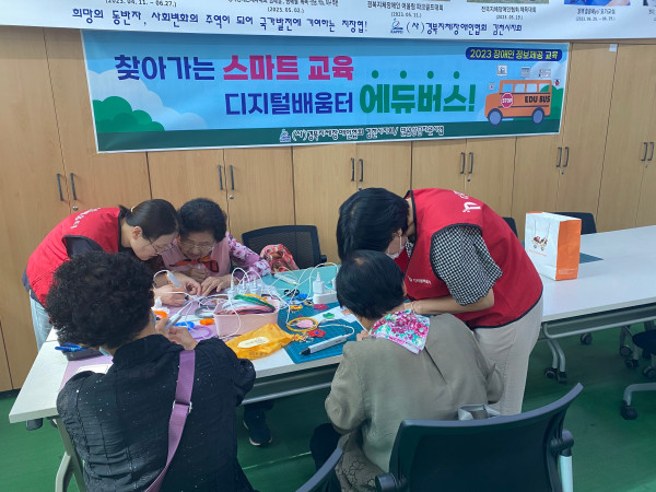 김천시에서는 12일, 19일 경북지체장애인협회 김천시지회에서 찾아가는 디지털 배움터, 에듀버스를 운영했다. 양일간 강좌에서는 MBTI 기반 잠재 능력테스트 인지 게임, 스마트폰 교육, VR 체험, 3D 펜 체험, 키오스크 체험 등 다양한 디지털 관련 교육에 40여 명의 회원들이 참가했다.