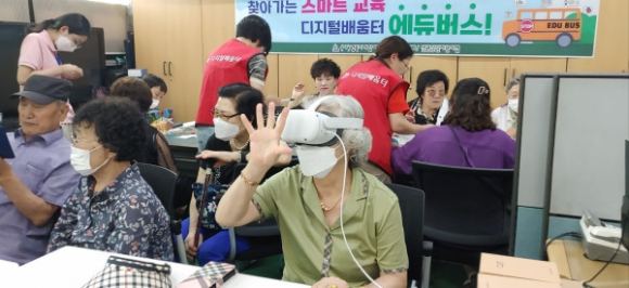 교육 버스는 디지털 기기에 익숙하지 않은 소외계층의 정보격차 해소를 위해 버스를 이용한 이동형 교육장으로 스마트폰 기능, 키오스크 주문 실습과 같이 일상생활에 필요한 기기 활용법을 1:1 맞춤교육 형식으로 진행하는 방문 교육이다.