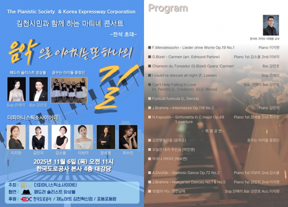 이번 공연은 The Pianistic Society(더피아니스틱소사이어티)가 주최하고 한국도로공사가 후원했으며, 페도라 솔리스트 앙상블이 협연해 지역사회와 예술이 함께하는 공공예술 무대로 마련됐다.