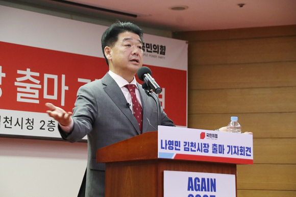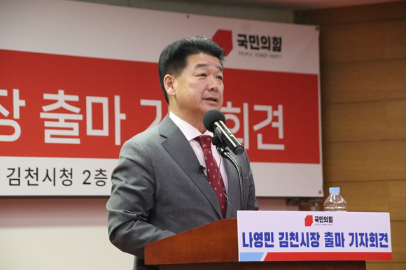나영민 김천시의회 의장이 9일 오전 11시 김천시청 2층 회의실에서 기자회견을 갖고 오는 6월 3일에 치러질 김천시장 선거 출마를 선언했다.
