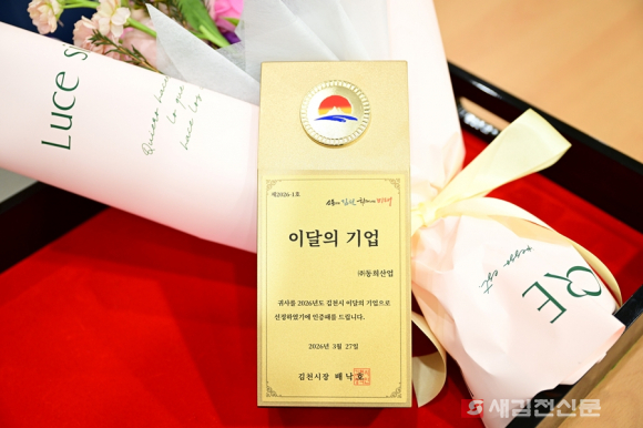 김천시는 2026년 3월 이달의 기업으로 ㈜동희산업(대표 박주은)을 선정하고 지난 3월 27일 김천시청에서 선정식을 개최했다.