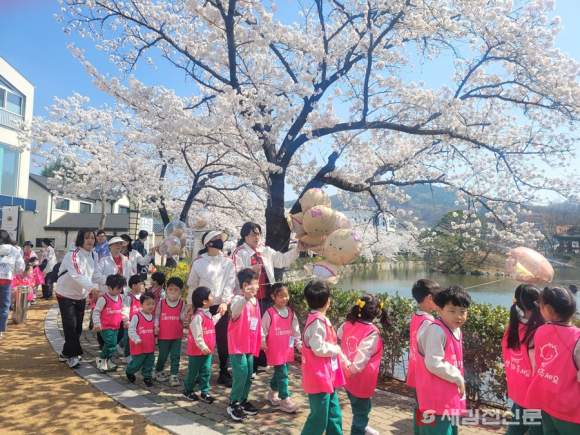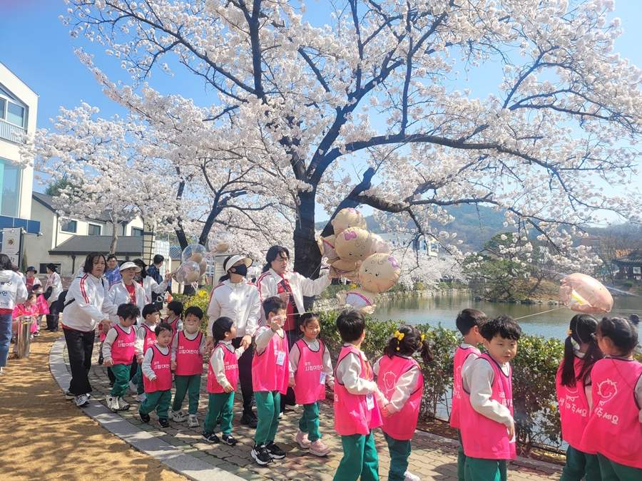 이번 캠페인에는 김천시립어린이집 6개소(모암, 개령, 센트럴자이, 율곡, 지례, 아포)의 원생 및 보육교사 120여 명이 참여해 벚꽃 명소인 연화지 산책로를 따라 이동하며 시민들을 대상으로 출산과 육아의 소중함을 전달했다.