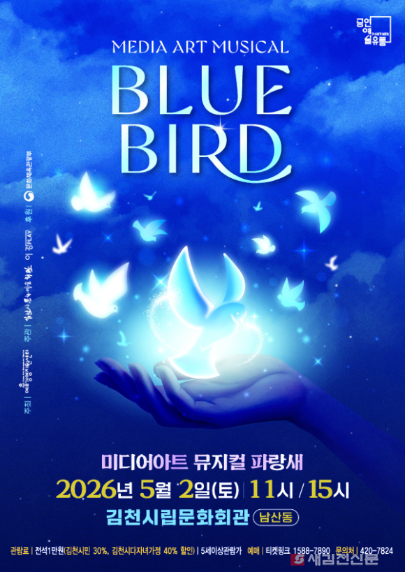 김천문화예술회관은 진정한 행복의 의미를 찾아 떠나는 신비로운 모험을 그린 미디어아트 뮤지컬 ‘파랑새’를 5월 2일 김천시문화회관(남산동)에서 공연한다.