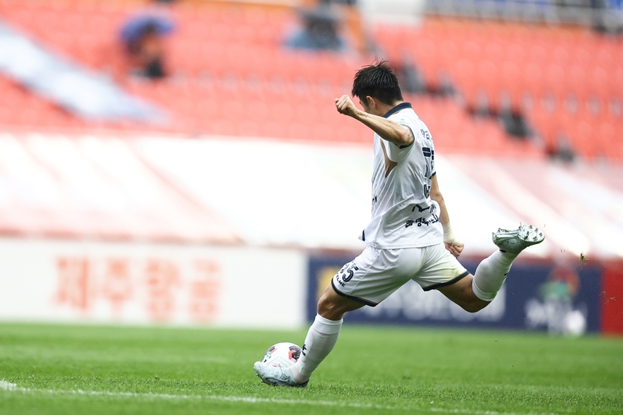 경기 초반 흐름은 김천상무가 주도했다. 전방에서부터 강력한 압박을 통해 제주를 거세게 몰아부쳤다. 제주도 이를 공략하기 위해 빠른 빌드업을 시도하며 대응했다. 전반 24분, 위기가 찾아왔다. 오른쪽에서 공격을 시도한 제주가 크로스를 올렸고, 골키퍼와 수비 사이로 크로스가 향했다. 상대 공격수가 이를 슈팅으로 연결했지만, 백종범이 끝까지 몸을 날려 팀을 위기에서 구해냈다.