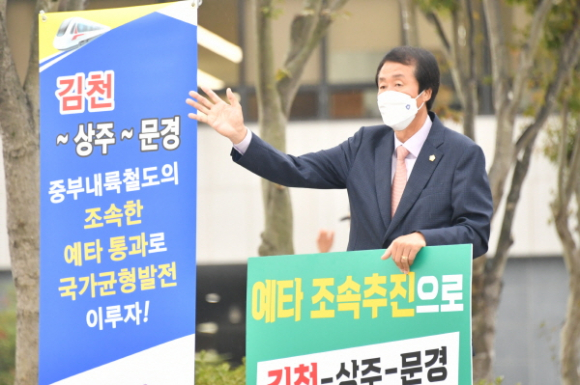 김천, 상주, 문경의 시민들 80%가 서명한 탄원서를 정부부처에 제출하며 지속적인 사업의 조속추진을 건의했다. 제4차 국가철도망 구축계획에도 철도운영 효율성 제고를 위해 반드시 필요한 사업으로 고시됐으나 현재까지 추진상황이 전무한 실정이어서 절실한 시민들의 마음을 담아 이날 이우청 의장이 1인 피켓 시위에 나선 것이다.